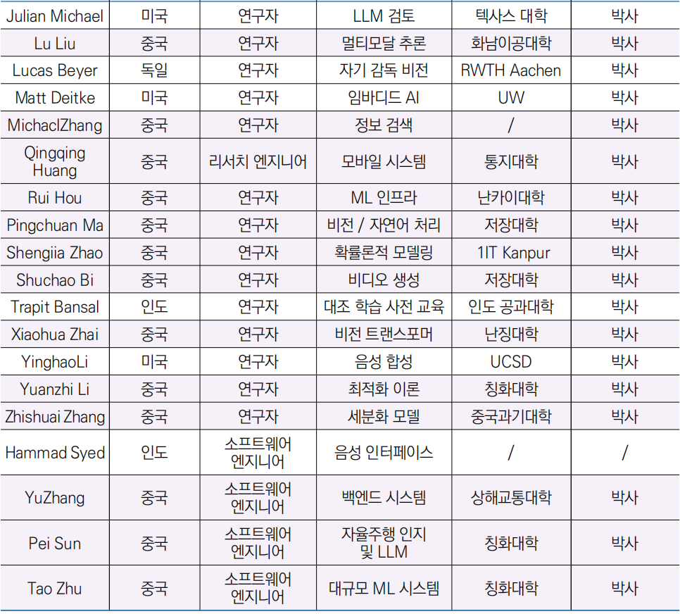 ○ (중국계 절반) 슈퍼 인텔리전스 팀 44명의 구성원 중 21명(약 50%)은 중국계 배경을 보유하고 있으며 문화적 동질성과 AI 분야 내 중국계 인재의 국제적 경쟁력이 반영