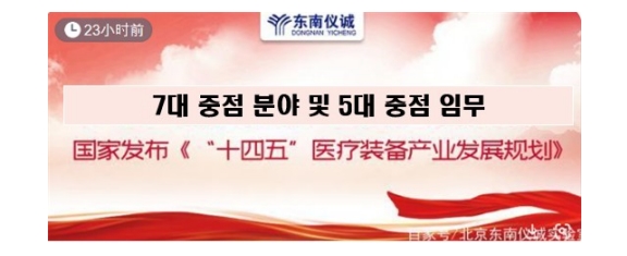 | 공업정보화부 등, 14차 5개년계획 기간 의료장비산업 발전계획 발표 | ||