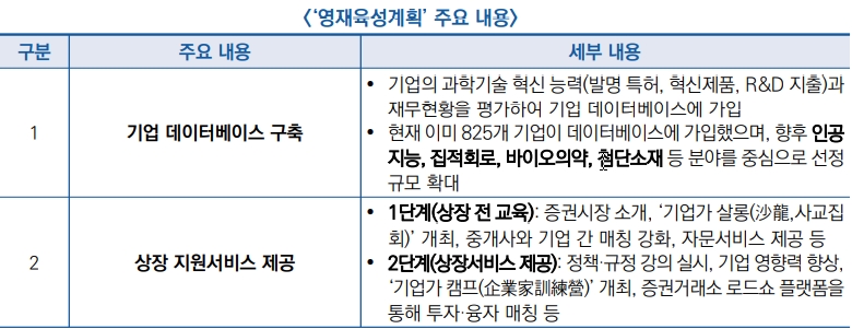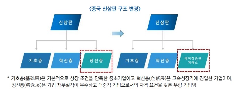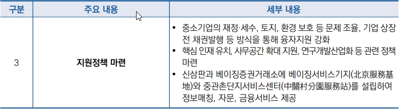 – 본 계획은 고급· 정밀· 첨단(高精尖) 분야를 중심으로 성장 잠재력과 혁신역량이 높은 과기형 중소기업을 육성하여 신삼판과 베이징증권거래소에 상장 지원