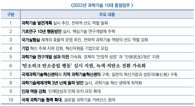 ▣ 최근 열린 2022년 전국 과학기술 업무회의에서 중국 과학기술부 왕즈강(王志剛) 부장은 ′22년 과학기술 10대 중점임무를 소개했음(1.6)