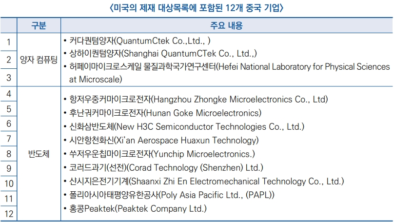 | 미국, 양자컴퓨팅 기술 중국 12개 기업에 수출 제한 발표 | ||