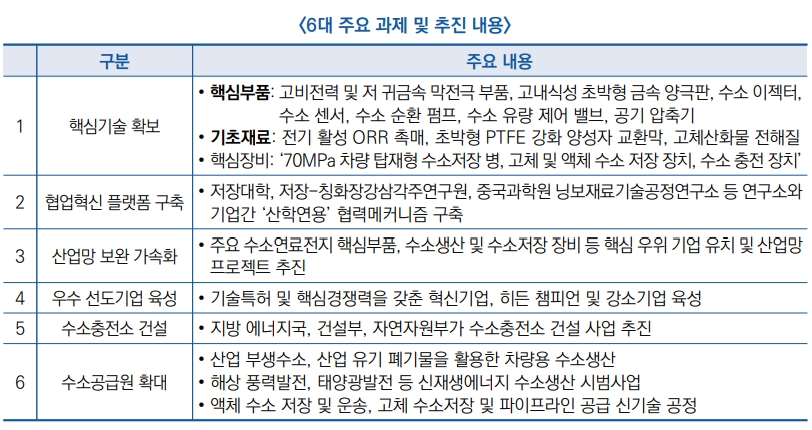 ● 수소연료전지차 산업발전과 관련 4개의 시범사업을 추진해 1조 위안(186조 원) 규모의 자동차 산업 클러스터 구축 및 수소에너지 산업생태계 조성