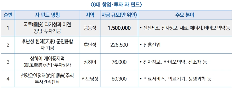 ● 올해 11월 초 국가과학기술성과이전 유도펀드는 총 42.13억 위안을 투입하여 창업・투자 자펀드 6개를 신설 예정