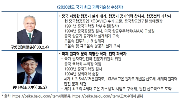 ▣ ‘2020년도 국가과학기술 시상식(2020年度國家科學技術獎勵大會)’에서 전투기 설계사와 핵에너지 과학자에게 최고과학상을 수여(11.3)