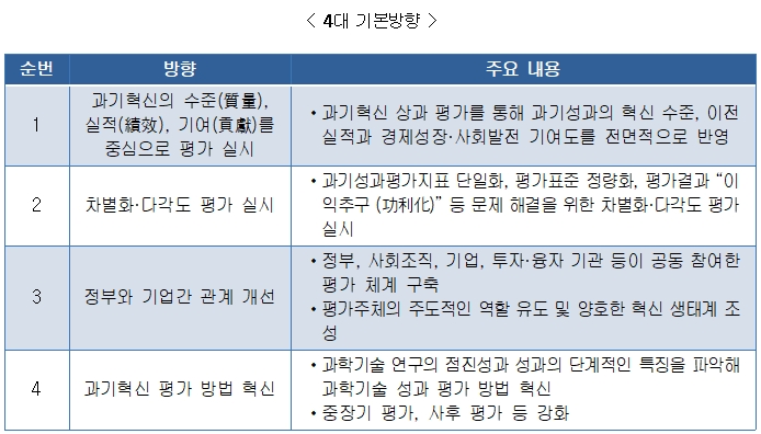 ● (평가 내용) 과학기술 성과 평가 체계 보완의 핵심내용은 무엇을, 누가, 어떻게 평가하고 어떻게 활용할 것인지의 문제를 해결하는 데에 있음