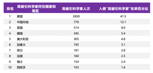 | 2020년 상위 1% 연구자(HCR) 발표, 중국은 770명으로 세계 2위 차지 | ||
