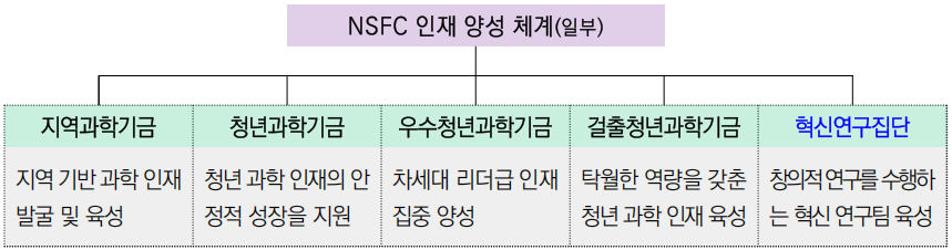 - (과제 명칭 개편) 기존 ‘기초과학센터’ 과제는 ‘탁월연구집단’으로, ‘걸출청년’, ‘우수청년’, ‘청년’ 과학기금은 각각 청년과학기금 A/B/C유형으로 명칭을 조정함