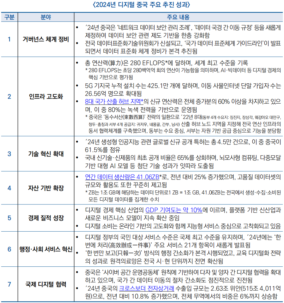 * ‘디지털 중국 발전 보고서(2024)’는 현재 전체 원문이 미공개 상태이며, 공개 시 상세 내용을 별도로 정리할 예정