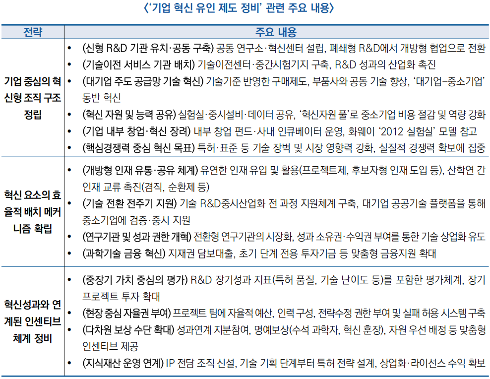 - (혁신요소의 효율적 배치 메커니즘 확립) 인재·기술·자본 등 핵심 자원의 유기적 융합을 통해, 기업 내부의 혁신 역량을 극대화