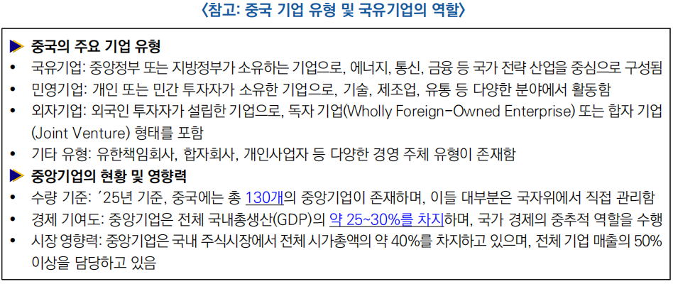 ** 중앙기업은 중앙정부가 소유 및 운영하는 국유기업을 지칭 (아래 참고 내용 참조)