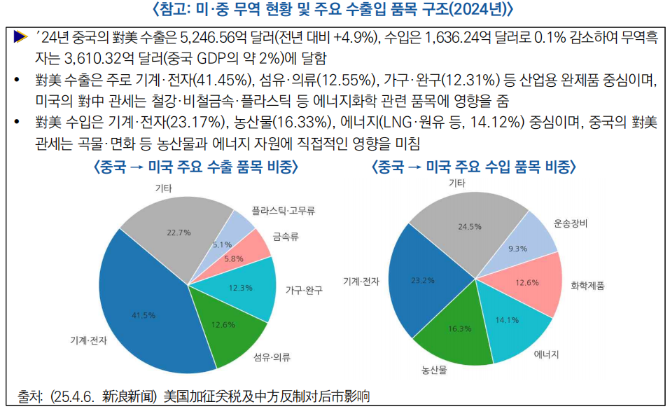 | 2025년 미·중 관세전, 中 대응 조치 전방위 확산 추이 주목 | ||