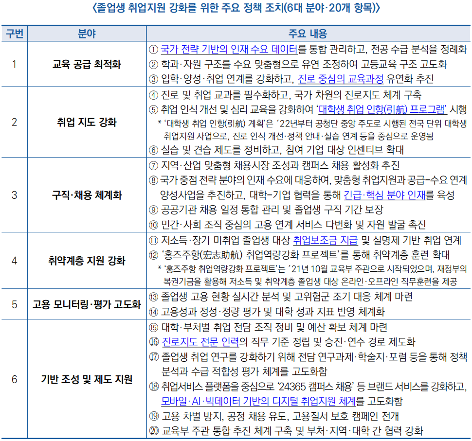 | 中, 청년 고용 위기 대응, 고등교육 졸업생 대상 전주기 지원체계 구축 | ||