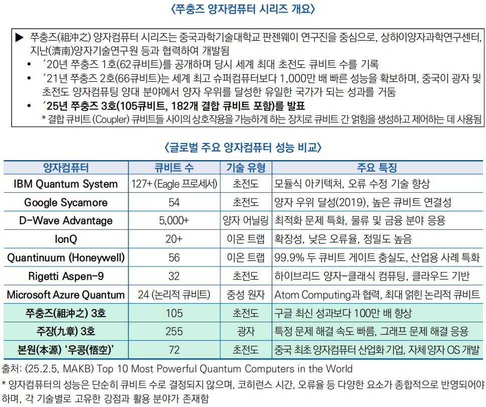 | 양자 패권 경쟁 격화… 중국, 105큐비트 ‘쭈충즈(祖沖之) 3호’로 글로벌 선도 | ||