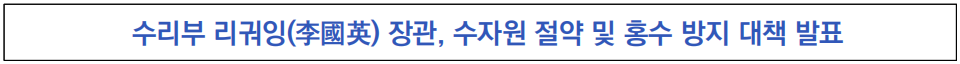- 특히, 국가적 물 자원 관리 원칙(‘수자원 기반 도시·산업·인구·토지 개발’)을 강화하여 지속가능한 발전에 주력