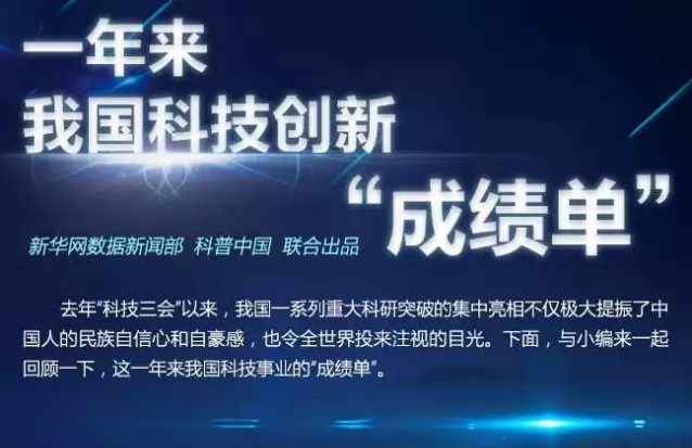 2016년 “과학기술 3대회의(전국과학기술혁신대회, 중국과학원/중국공정원 원사대회, 중국과학기술협회 제9차전국대표대회)” 개최 이후, 중국은 중대 과학연구에서 눈부신 성과를 거두어 중국인의 민족 자긍심과 긍지감을 높였고 세계적인 주목을 받을만한 성적표를 내놓았다.