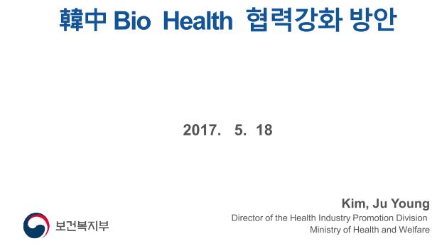 한중 바이오헬스 협력방안 발행일2017.06.20 조회수752 다운로드 바로보기 2017년 5월 19일, 김주영 보건복지부 보건산업 진흥과장이 한중과기협력센터에서 개최하는 "과학기술 사랑방" 세미나에 참석해 "한중 바이오헬스 협력방안"이라는 주제로 발표를 하였다(세부적인 발표내용은 첨부파일 참조 바람). 이전글 에너지의학과 기 다음글 최근 1년간 중국과학기술혁신 "성적표" 목록