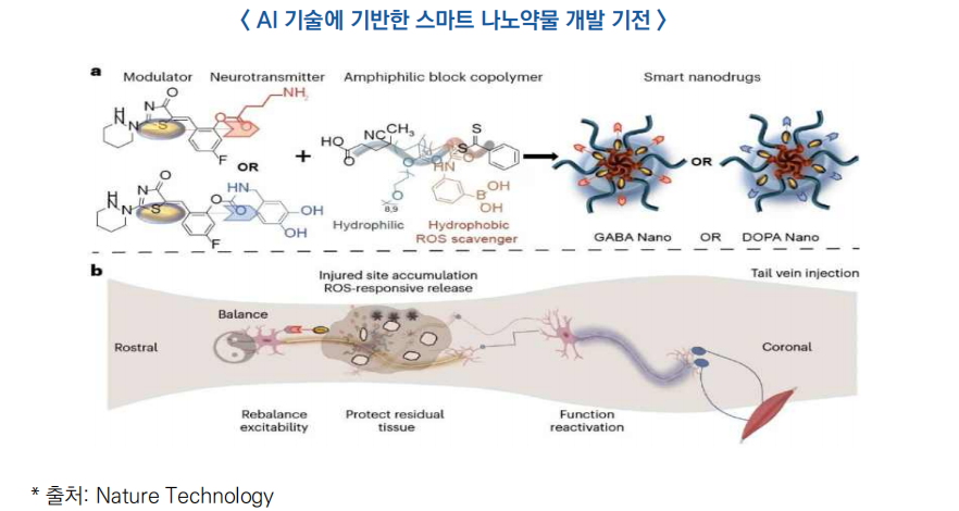 ○ 저장대학 왕쉬화(王绪化) 연구진은 AI 약물 설계플랫폼에 기반해 손상된 척수를 치료할 수 있는 스마트 나노 약물을 개발