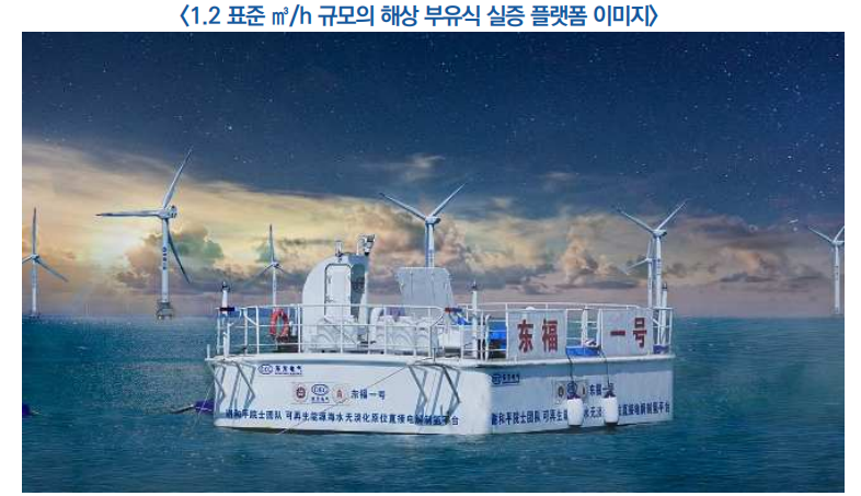 - 1.2 표준 ㎥/h 규모의 해상 부유식 실증 플랫폼을 구축하였으며, 3~8급 바람과 0.3~0.9m의 파도의 간섭 하에서 해상풍력 시스템과의 직접 연결을 실현해 10일간 안정적으로 운행