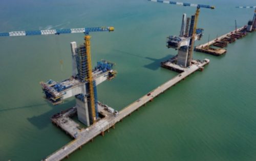 | 중국 첫 시속 350㎞ 해상 고속철 메이저우만대교 주탑 주체구조 완공 | ||