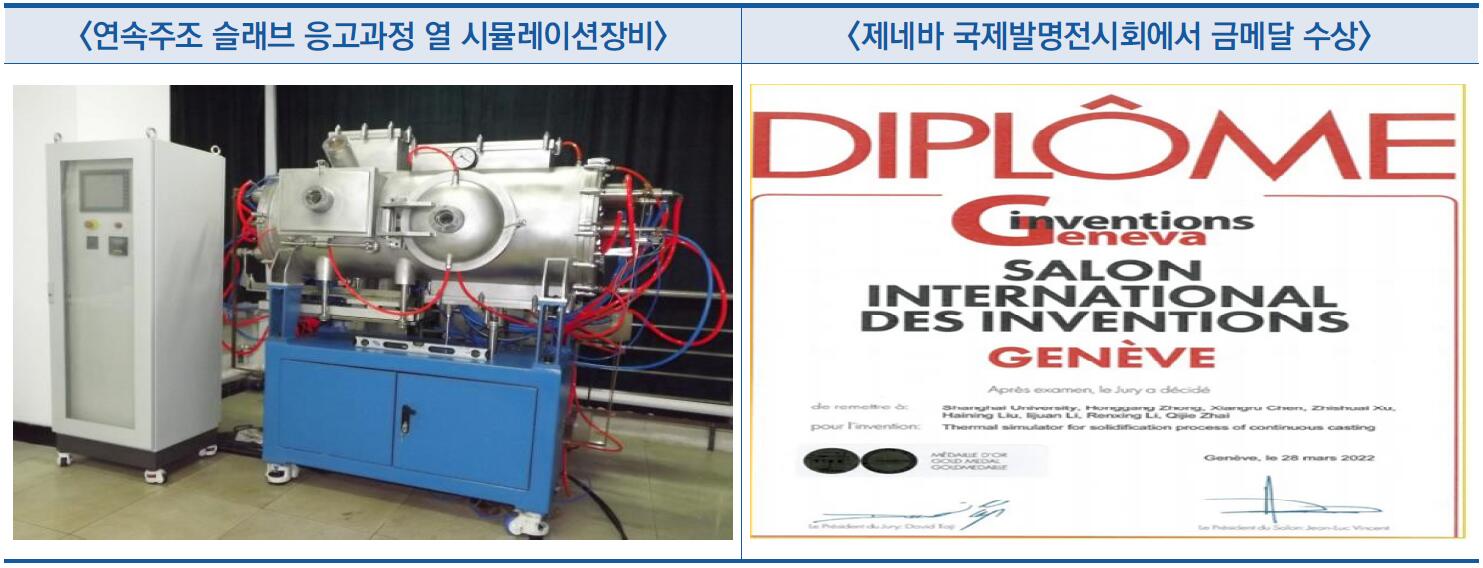 □ 상하이대학 첨단응고기술센터(CAST)는 연속주조 슬래브(slab) 응고 열시뮬레이션장비를 개발하여 제네바 국제발명전시회에서 금메달을 수상(4.16)