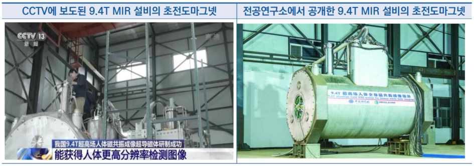- 초전도자석 중심부의 자기장 강도는 9.4559T에 달하고 자기장의 균일성도 우수해 신진대사, 뇌 인지과학 및 신경과학 등 바이오의학 첨단연구 분야 연구설비로 활용될 예정