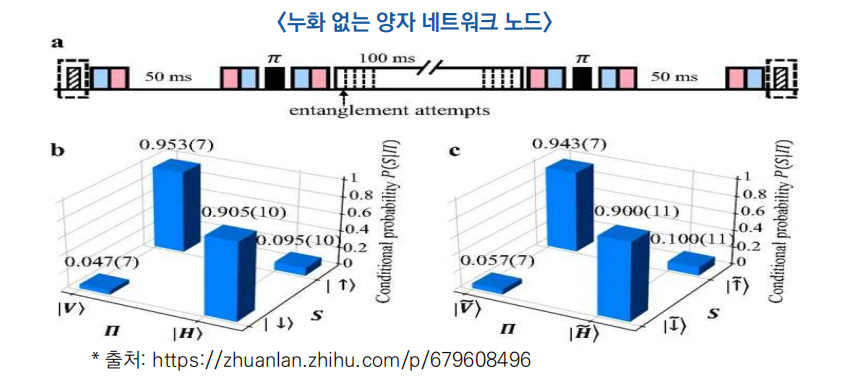 - 생성된 통신 비트는 수백 밀리초 동안 이온-광자 얽힘이 생성될 수 있으며, 스핀 에코 방법을 사용하여 저장 비트의 수명을 연장하여 초 단위의 저장 양자 비트의 일관성 시간 달성