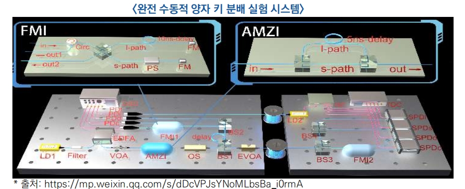 ○ 중국과학기술대학 궈광찬(郭光灿) 원사 연구팀은 완전 수동적 양자 키 분배 시스템 구축