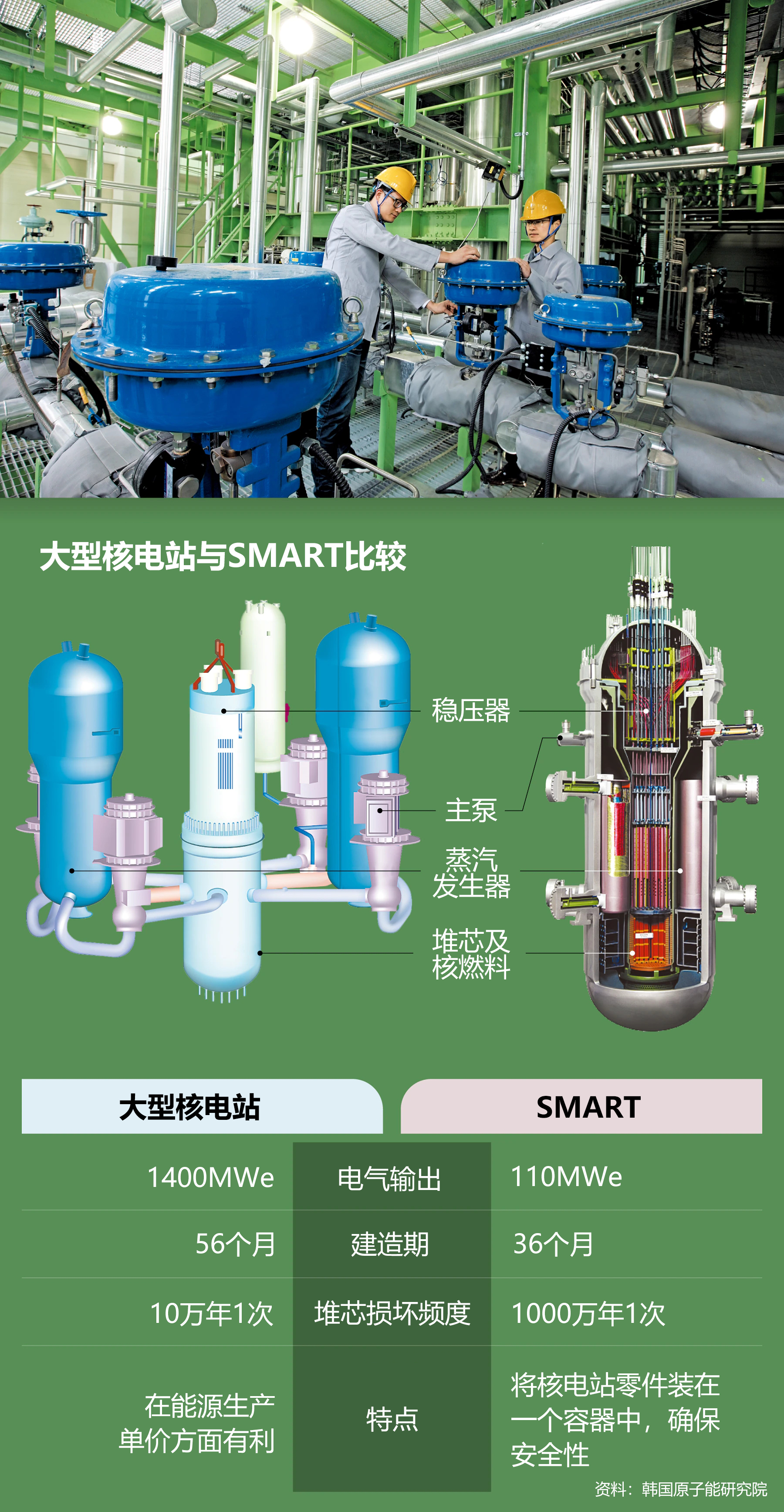 9月5日,在位于大田的韩国原子能研究院内的SMART(System-integrated Modular Advanced ReacTor,即韩国小型模块化核反应堆)综合试验所进行了韩国原子能研究院开发的小型模块化反应堆(SMR,Small Modular Reactor)SMART的安全性验证。在6层建筑物的45米高的绿色铁制结构物之间,摆放着堆芯等SMART核电站的主要机器。这是世界上规模最大的可以测验中小型核反应堆安全性的设施。核反应堆的高度像实物一样达到18.5米,直径缩小到实际的七分之一。