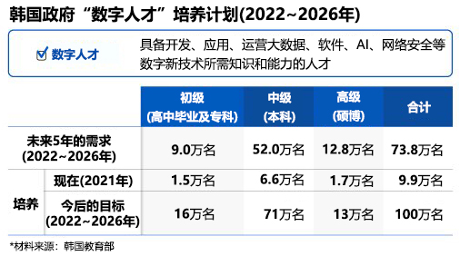 特别是总统尹锡悦每次强调半导体时,都会同时强调教育和人才的重要性。尹总统的教育议程是通过果断的高等教育限制改革确保核心人才,从小学、初中教育开始培养具备数字能力的潜在人才。韩国教育部表示,包括半导体在内的高新技术产业人才培养计划已经启动,将在今后10年内培养15万名半导体人才。据推算,相关产业人才需求在2031年为303,943名,但目前韩国国内产业人才只有176,509名。韩国政府计划通过扩大大学招生名额培养4.5万人,通过培训教育培养10.5万人。