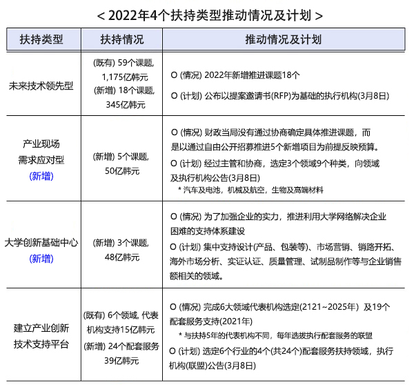 今年的项目将以未来技术领先型(既有+新增)、产业现场需求应对型(新增)、大学创新基础中心(新增)、建立产业创新技术支持平台(既有+新增)等4种类型进行推进。