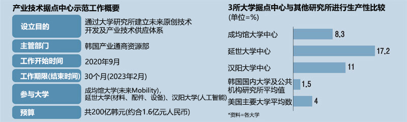 延世大学、成均馆大学、汉阳大学等3所大学的技术据点中心的平均研究生产性是现有研究所的10倍以上。
