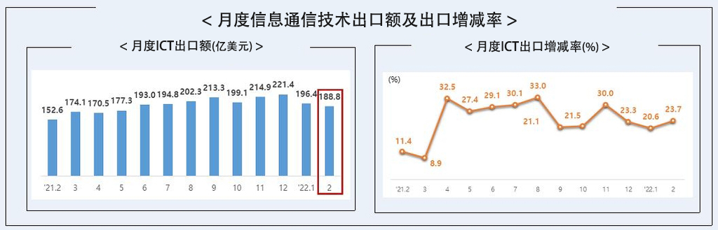 | 韩国2月信息通信技术出口额达188亿美元 | ||