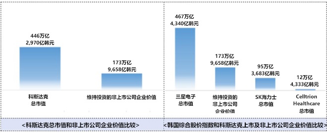到去年年末,5,556家公司中,除上市、已回本的企业外,维持投资的4,453家非上市企业的企业价值为173.9万亿韩元(约合9,172亿元人民币),约占科斯达克(KOSDAQ)上市企业总市值446.2万亿韩元(约合23,363亿元人民币)的39.0%。