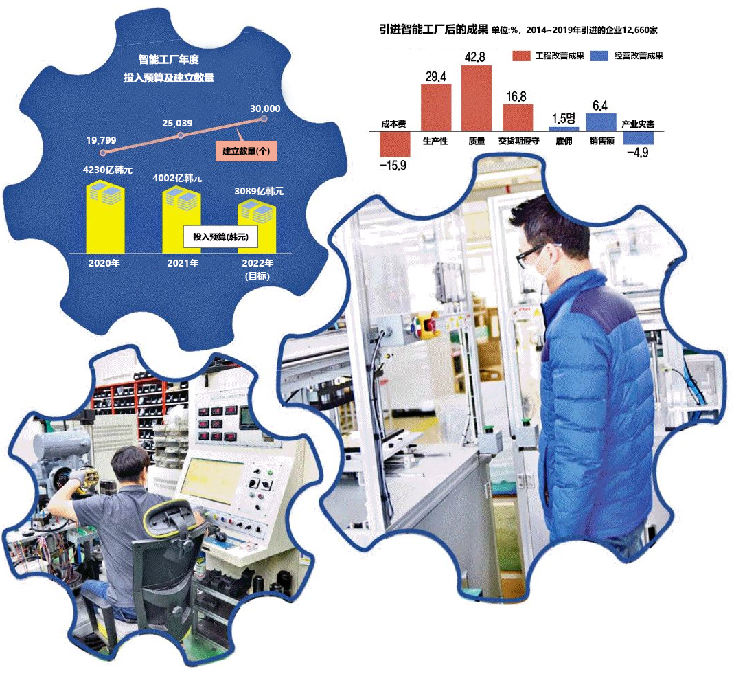 8月8日,据韩国中小风险企业部透露,对建立智能工厂的12,660家企业进行分析的结果显示,生产效率平均增加了29.4%,质量也改善了42.8%。成本减少了15.9%,工伤减少了4.9%,取得了显著成果。雇用人数平均增加了1.5人。