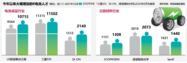 由于产业特点上很难在短期内培养出娴熟的人才,因此电池领域有经验的人是"凤毛麟角"。韩国3家电池公司从很早开始就通过不断的研发(R&D)培养人才。随着人才流失,LG和SK的"电池诉讼"纷争爆发后,韩国企业之间的人才争夺战呈缓和趋势。但是很多外国企业仍然以高身价瞄准高端人才。
