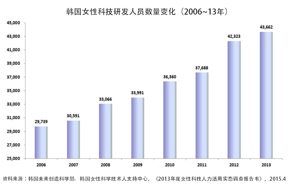 | 韩国女性科技研发人员情况 | ||