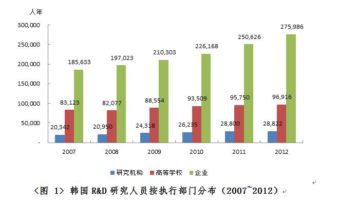 | 2012年韩国企业R&D研究人员投入概况 | ||