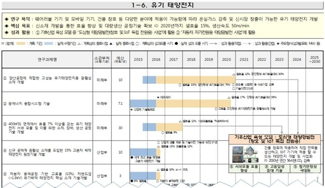 ![]() 韩国未来创造科学部最近发布了综合13个部门、718项研发课题的“应对气候变化技术路线图(CTR : Climate Technology Roadmap,以下简称‘CTR’)"。 气候技术路线图大体分为减少二氧化碳排放、碳资源开发利用、适应气候变化三大部分,综合了50个研究团队对10大气候技术的718项具体课题的研究现状和计划,以及主要预期成果和应用计划。 10大气候技术分别是:太阳能电池、燃料电池、生物燃料、二次电池、合成气体转化、二氧化碳转化、二氧化碳矿物化、电力信息技术、CCS、联合平台开发。 政府相关人员表示:“这次制定的气候技术路线图将有利于促进支持R&D、最大限度利用R&D成果、战略宣传和指导等”。 未来部以减少温室气体排放为目标,计划至2030年将以气候技术路线图为指导,每年定期对新技术利用提供1~2次支持,同时,将以气候技术路线图为基础,适用新的技术管理方法。 资料来源:韩国未来创造科学部 |
