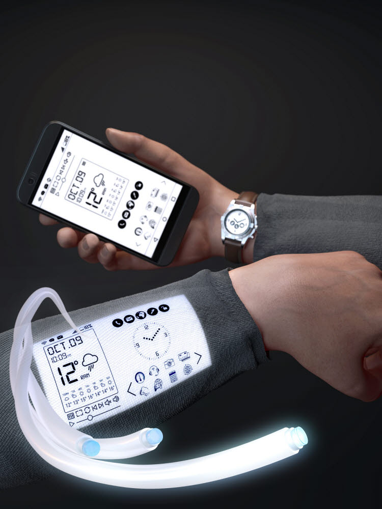 ![]() < 使用白色OLED的电子纤维显示屏概念图/图片来源:KAIST >