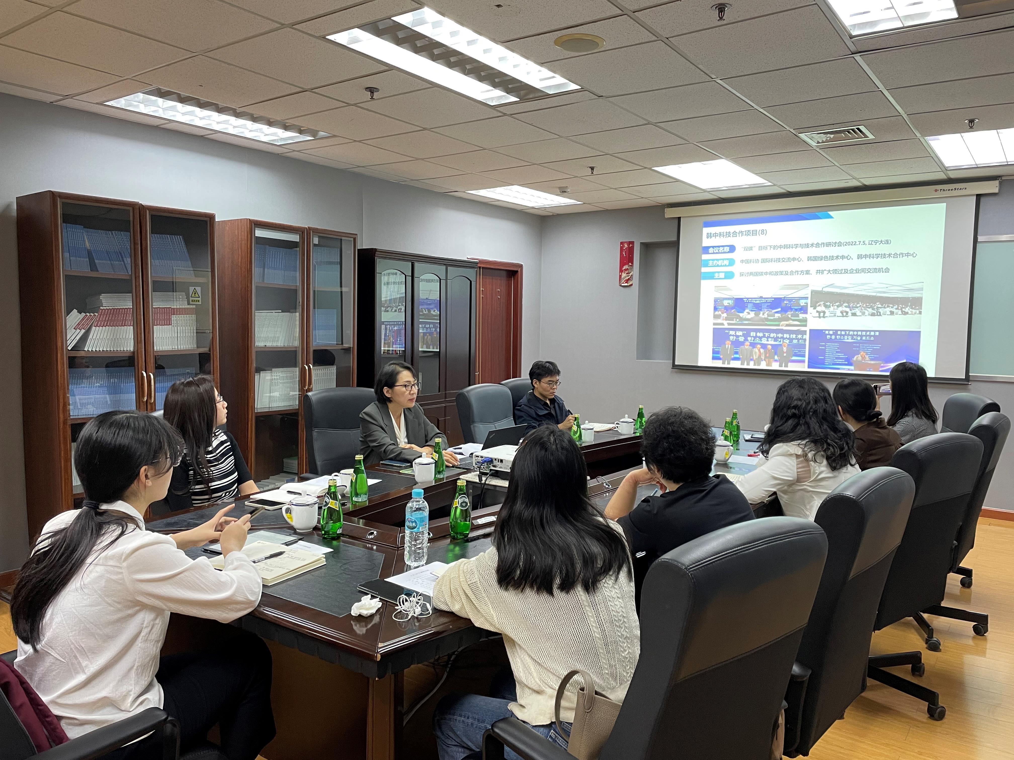 韩中科学技术合作中心徐幸我代表介绍了主要业务情况,韩国信息通信部下属的海外分支机构发展现状和本土化战略等, 双方就通过国外人才研究中心运营的《国际人才交流》期刊开展合作进行了探讨。