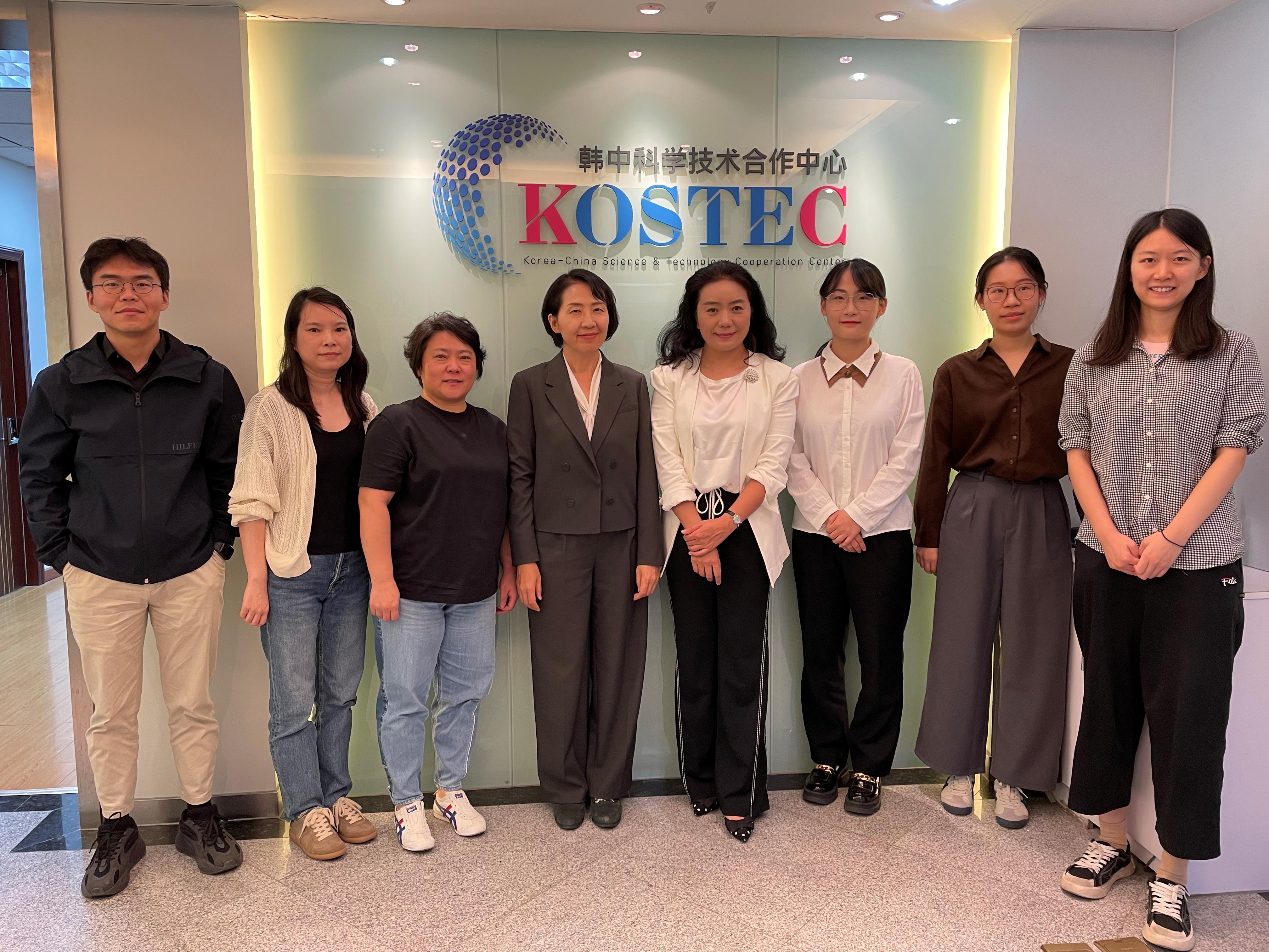 2023年9月28日下午中国人事部下属的国外人才研究中心总编辑徐庆群和北京市科学技术委员会下属的国际科技合作中心部长郑志明一行八人为调研韩国科技部海外分支机构运营情况访问了我中心。