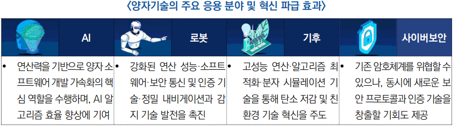 (기술) 양자기술(QT)은 AI·로봇·암호·센서 분야의 혁신을 가속화하는 핵심 기술로 평가됨