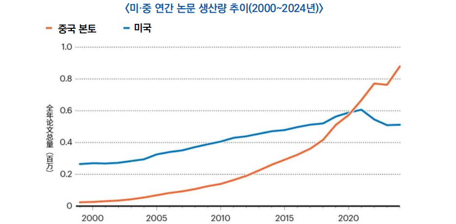 * 이는 중국의 자국 중심 연구 강화와 함께, 미국의 연구비 삭감, 외국인 유학생 관리 강화, 기초 연구 협력 위축 등 정책 요인이 복합적으로 작용한 결과로 평가됨