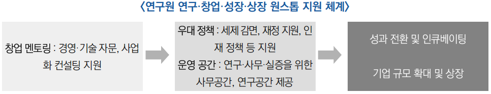 - (기능) 연구원은 기술 연구–성과 이전–창업·보육–산업화를 하나의 체계로 연계하는 통합 플랫폼으로 운영되며, AI·메타버스·소프트웨어 등 전략 분야의 인재 및 산업을 육성