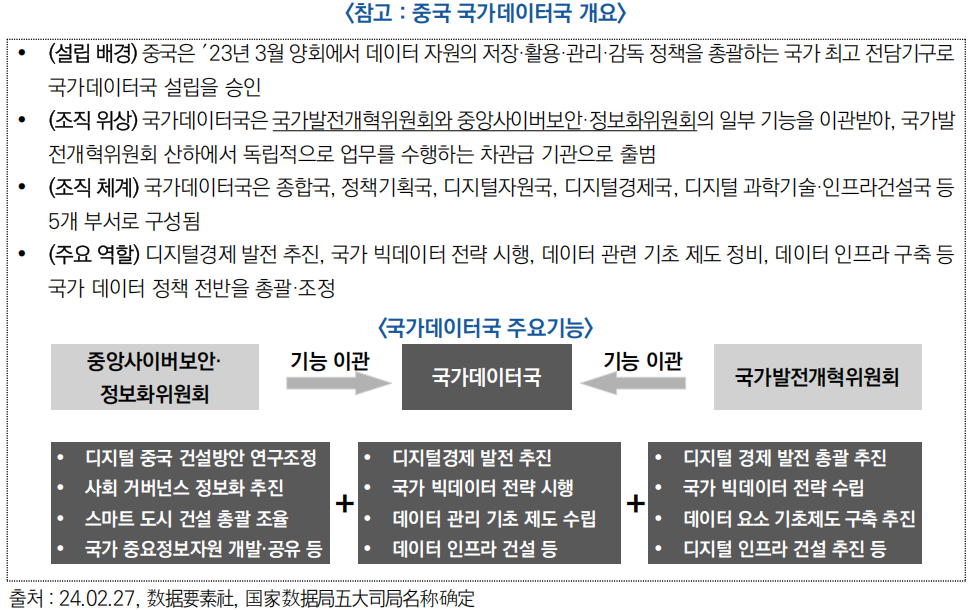 (목표) △ 2027년까지 데이터 기술 기반을 구축하고, △ 2030년까지 데이터 기술을 세계 선도 수준으로 끌어올려 데이터 요소가 경제·사회 발전을 뒷받침하는 체계를 마련