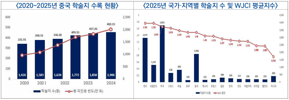 □ 중국과학기술협회는 '2025년 과학기술 학술지 세계영향력지수(WJCI) 보고서'를 발간