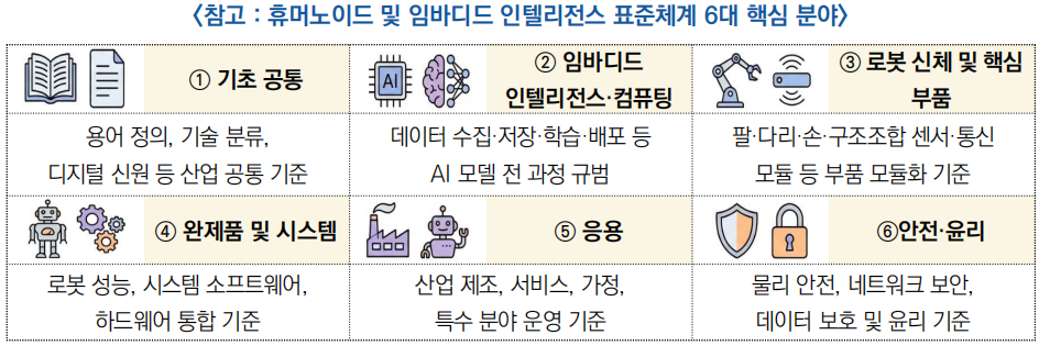 - 2025년 12월 공업정보화부는 휴머노이드 로봇 및 임바디드 인텔리전스 산업 표준화를 추진하기 위해 ‘휴머노이드 로봇 및 임바디드 인텔리전스 표준화 기술위원회’ 출범