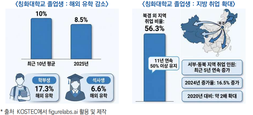 | 칭화대 졸업생 진로 변화 : 해외 유학 감소, 전략 산업 취업 확대 | ||
