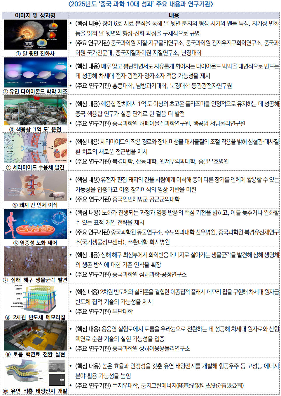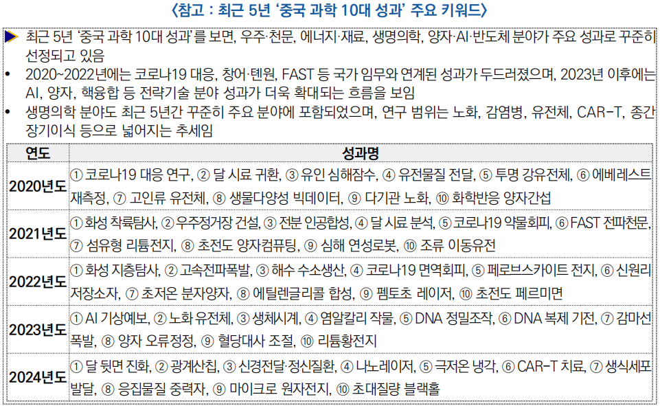 | 2025년도 ‘중국 과학 10대 성과’와 최근 5년 흐름 분석 | ||