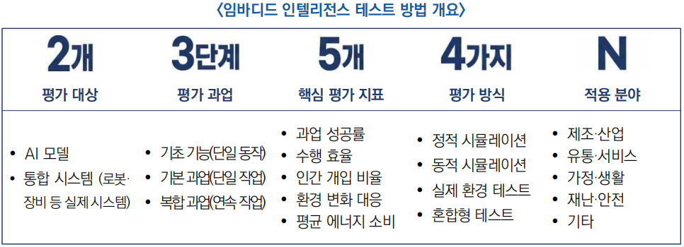 ○ (배경) 임바디드 인텔리전스 산업이 초기 성장 단계에서 빠르게 확대되는 가운데, 평가 기준 부재로 기술 신뢰성과 산업 확산에 제약 존재